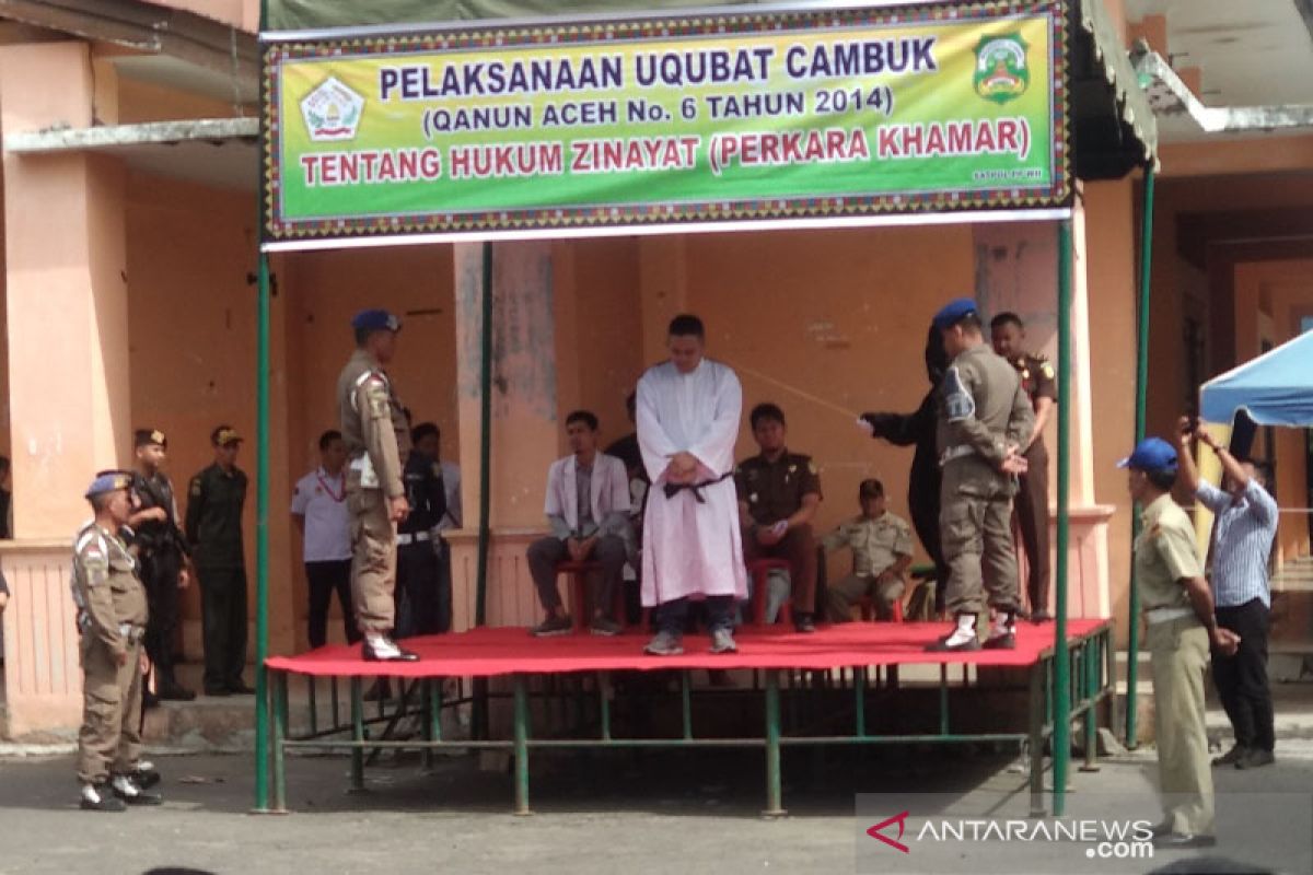 "Terhadap terpidana akan menerima hukuman cambuk sebanyak 27 kali yang akan kita mulai dari 9 cambukan terlebih dahulu," kata panitia pelaksana uqubat cambuk sebelum eksekusi dimulai.