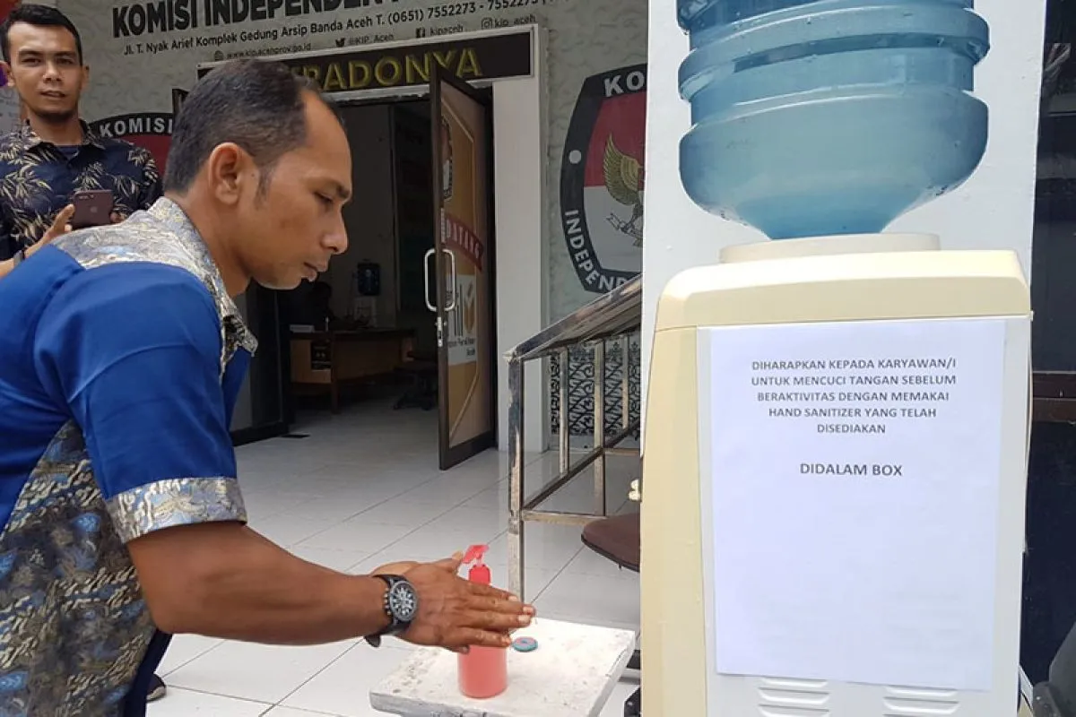 "Setiap orang, baik komisioner, staf, maupun tamu KIP Aceh menjalani pemeriksaan suhu tubuh. Jika suhu melebihi ambang normal, maka tidak diizinkan masuk. Semua orang juga diwajibkan mencuci tangan dengan antiseptik sebelum masuk gedung," kata Darmansyah.