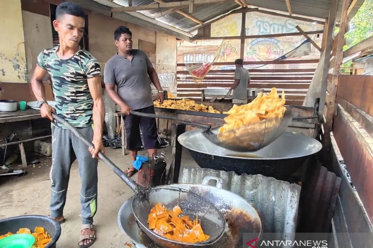 “Kami produksi empat kali sehari, karena setelah kami goreng langsung kami jual dengan saya bawa keliling antar kecamatan,” kata Muhammad Khalil.