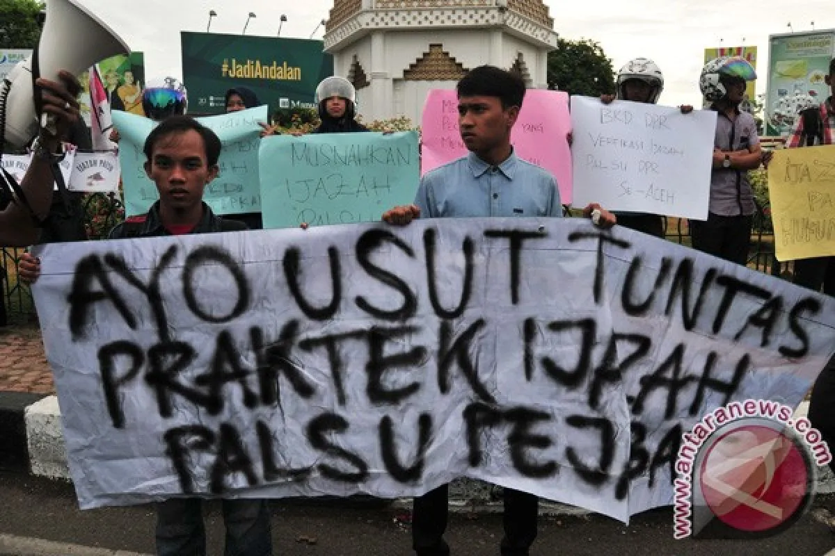 Muhammad Fajar Siddiq, koordinator unjuk rasa dalam orasinya mengatakan, selain berhasil mengungkap praktik pemalsuan ijazah, polisi juga sudah menangkap sindikat ijazah palsu.