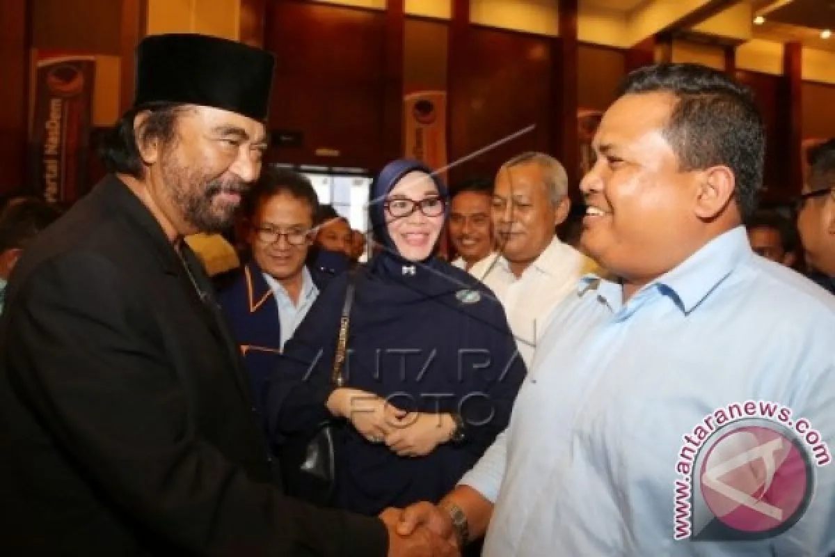 Surya Paloh mengawali pertemuan tertutup dengan calon Gubernur Aceh, yang saat ini masih menjabat Wakil Gubernur Muzakir Manaf di Hotel Hermes, Banda Aceh, Jumat.