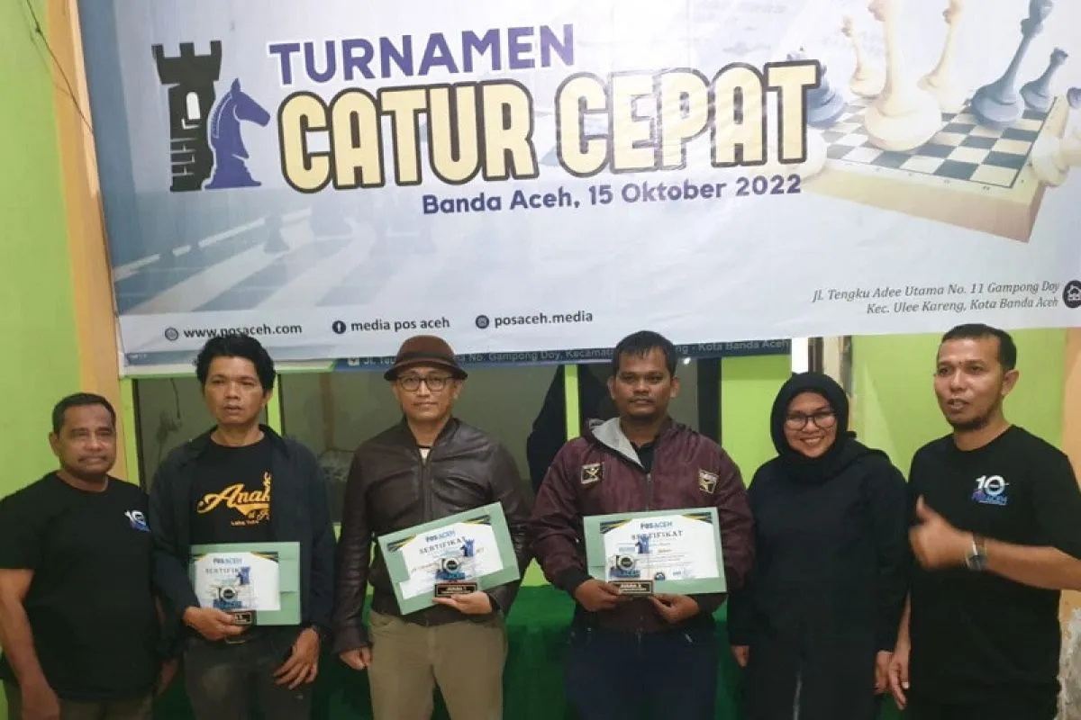 Turnamen catur cepat HUT ke-10 Media POS ACEH memperebutkan hadiah total 7,5 juta untuk pemenang peringkat 1 hingga 15. Juara 1, 2, 3 selain mendapat hadiah uang tunai juga diberikan tropi dan piagam penghargaan satu dekade Media POS ACEH.