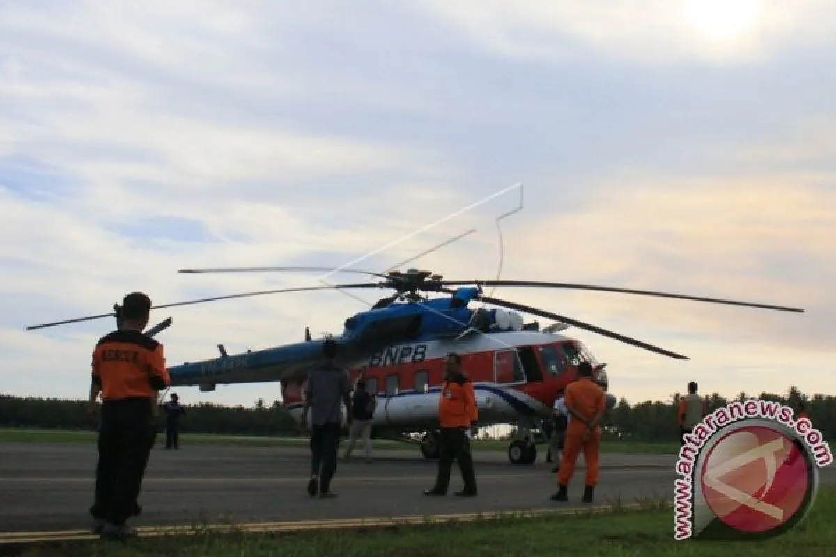 Dokumentasi: Sejumlah petugas berada di samping Helikopter jenis Mi 17 VN-8428 milik Badan Nasional Penanggulangan Bencana (BNPB) tiba di Bandara Cut Nyak Dhien, Kabupaten Nagan Raya, Aceh, Selasa (25/7/2017). (ANTARA FOTO/Syifa Yulinnas)