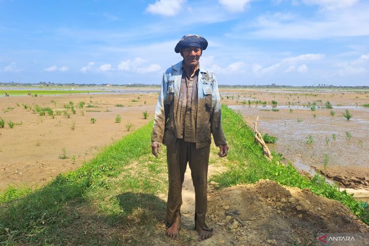 "Dulu sebelum banjir, lumpur di sawah hanya sebetis kaki. Tapi sekarang setinggi perut saya," kata Ishak.