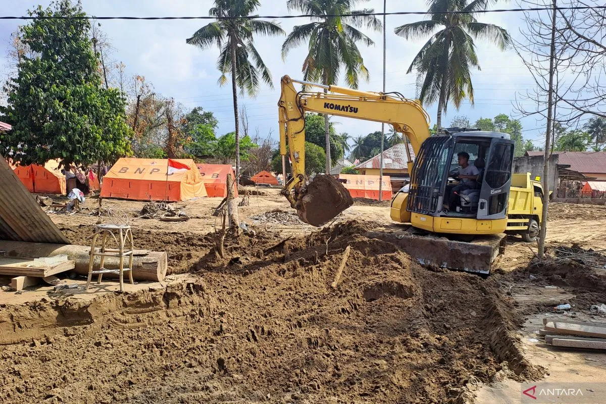 Banda Aceh (ANTARA) - Deru eskavator memecah kesunyian Desa Manyang Cut di Kecamatan Meureudu, Kabupaten Pidie Jaya, Aceh. Lengan besi alat berat itu mengeruk lumpur sisa banjir bandang yang sudah mengering dan memuatnya ke truk yang datang bergantian.