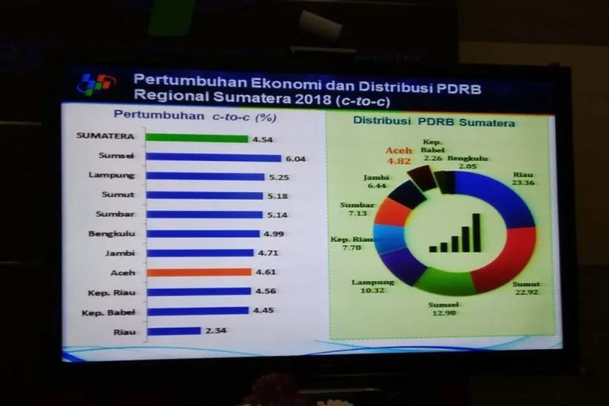 Ia melanjutkan, angka pertumbuhan ekonomi Aceh ini menempati peringkat ketujuh dari 10 provinsi di Sumatera dengan rata-rata mengalami pertumbuhan 4,54 persen.