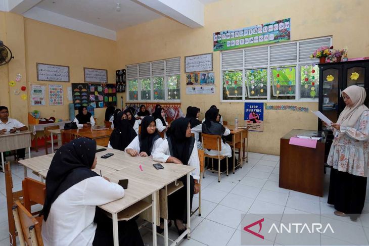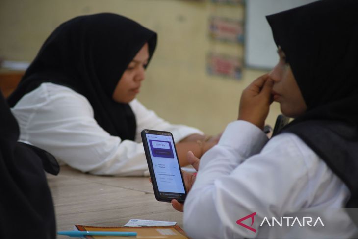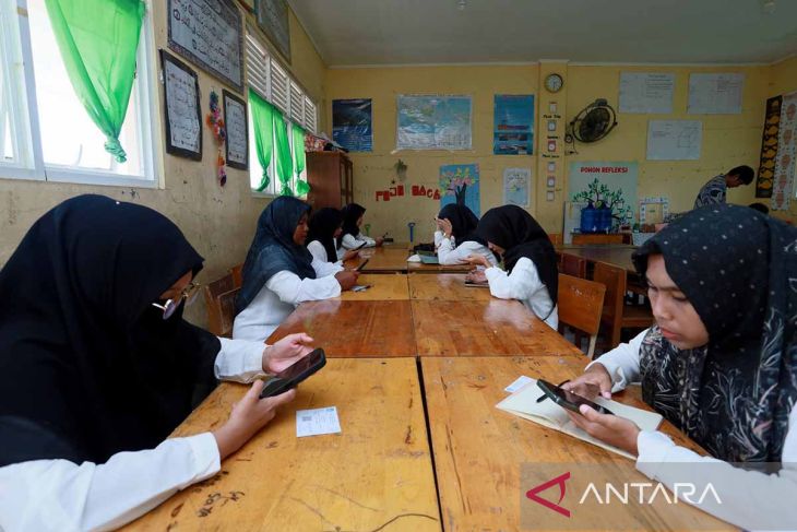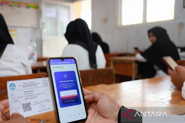 Peserta mengikuti ujian pendidikan kesetaraan Paket C secara daring menggunakan gawai yang diselenggarakan oleh Pusat Kegiatan Belajar Masyarakat (PKBM) Ruman Aceh di SDN 18 Banda Aceh, Aceh, Rabu (29/4/2026). Sebanyak 317 peserta dari kalangan alumni pondok pesantren tradisional serta masyarakat kurang mampu yang tidak memperoleh pendidikan formal mengikuti ujian Paket C tahun ajaran 2025/2026 dilaksanakan secara gratis sebagai upaya mendukung program pendidikan nasional. ANTARA FOTO/Akramul Muslim